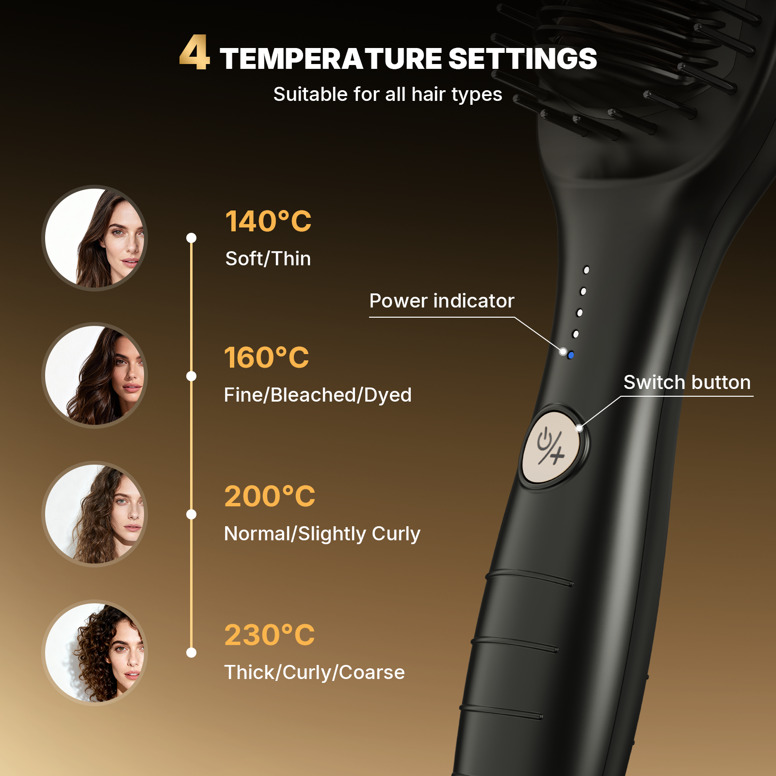 - 【 4 Temp Gears & 30-Min Auto-Shutoff, Safe for All Hair】4 temps (140-230℃) for fine/neutral/thick hair. 30-minute auto-shutoff, avoids power hazards, safe for home use.